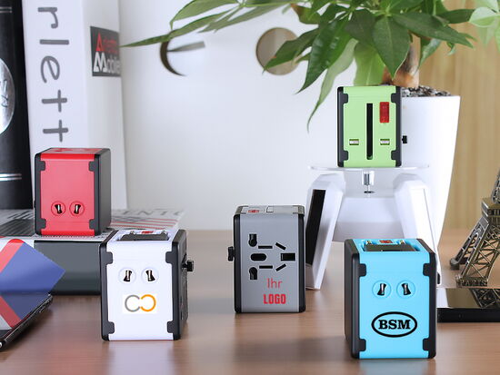 Bewährt auf Reisen - Welt - Reiseadapter + Ladegerät mit Ihrem LOGO bedruckt